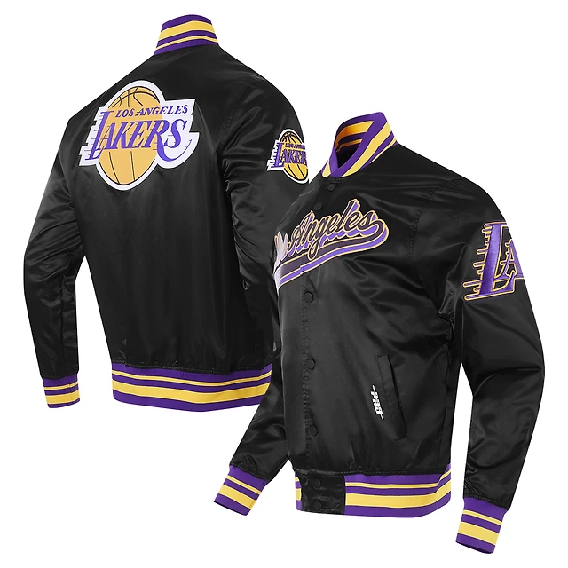Veste universitaire en satin à bouton-pression complète Pro Standard pour hommes, noire, Los Angeles Lakers Script Tail