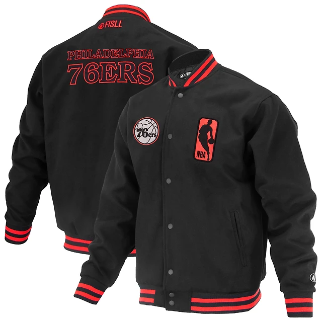 Veste universitaire unisexe FISLL noire Philadelphia 76ers Logoman Shadow Collection à boutons-pression