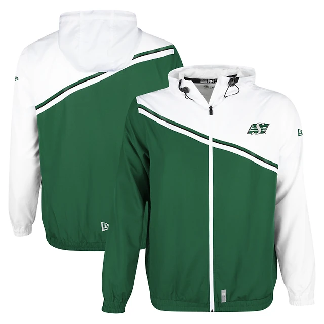 Veste verte à fermeture éclair intégrale tissée indéchirable Pinnacle des Roughriders de la Saskatchewan New Era pour hommes