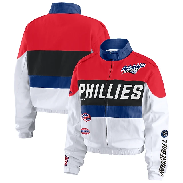 Veste zippée complète rouge/blanche WEAR by Erin Andrews pour femme des Philadelphia Phillies Racing