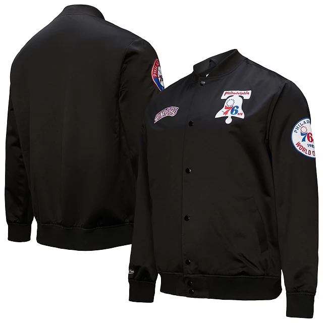 Veste zippée en satin noire pour homme de la collection Hardwood Classics Blackout des Philadelphia 76ers