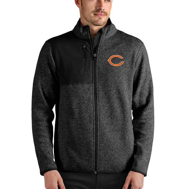 Veste zippée Fortune noire chinée Antigua pour homme des Chicago Bears