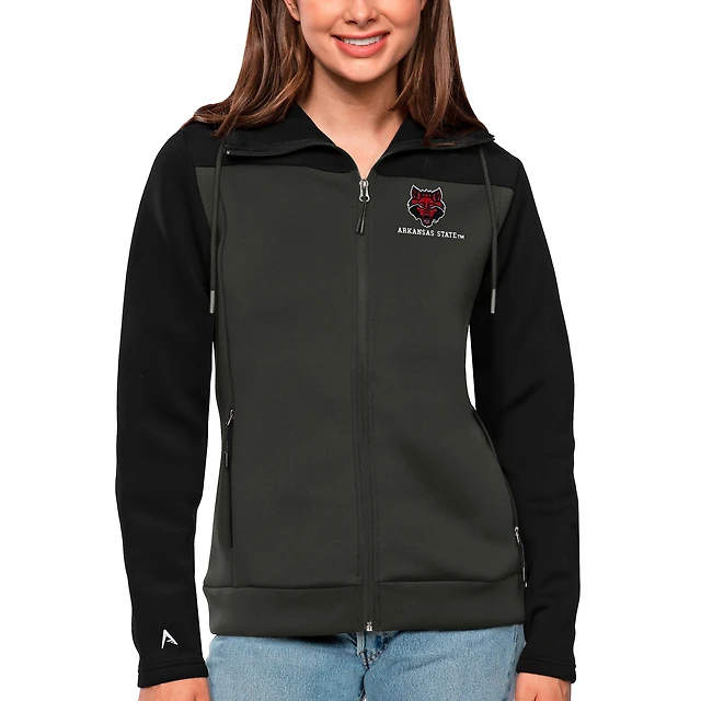 Veste zippée intégrale Antigua noire/anthracite pour femme des Red Wolves de l'État l'Arkansas