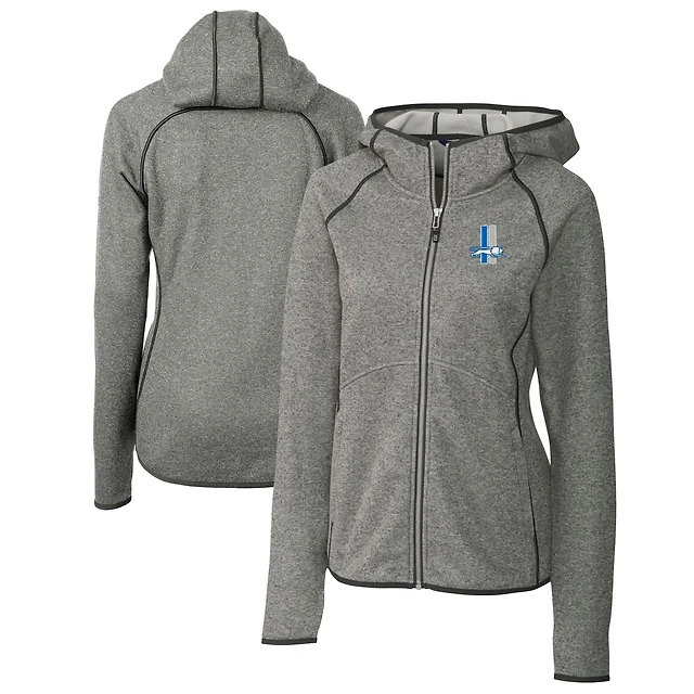 Veste zippée intégrale pour femme Cutter & Buck, gris chiné, avec logo rétro des Lions de Detroit