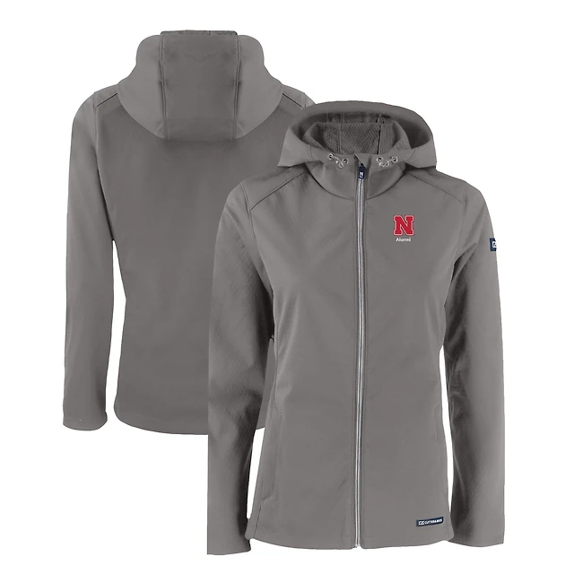 Veste zippée intégrale recyclée en softshell Evoke Eco pour femme, Cutter & Buck Pewter, Nebraska Huskers Alumni