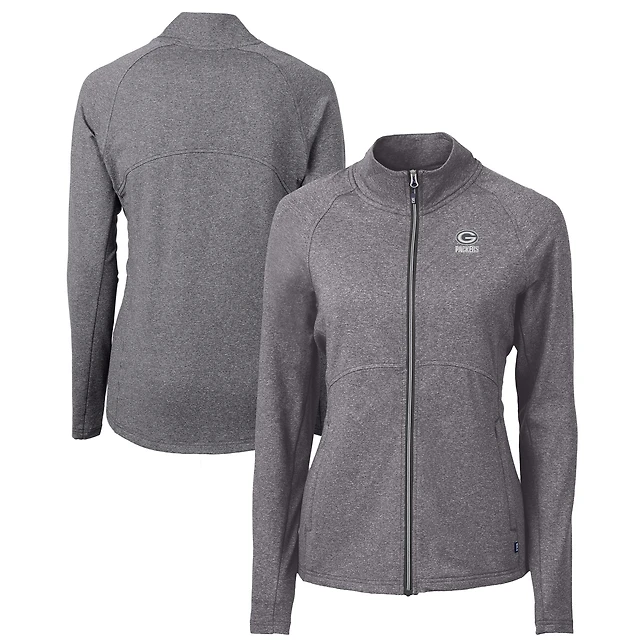 Veste zippée intégrale recyclée en tricot écologique Adapt Green Bay Packers pour femme Cutter & Buck Heather Black