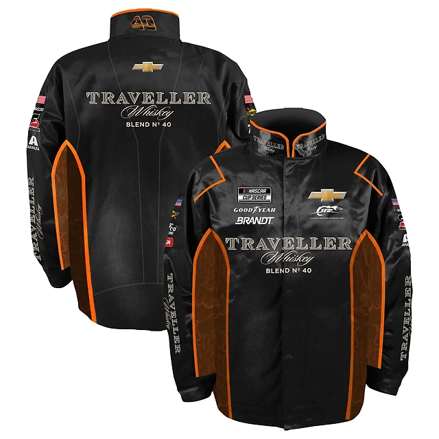 Vêtements officiels de l'équipe JR Motorsports pour hommes Veste à boutons-pression complète en sergé whisky Justin Allgaier Traveller noir