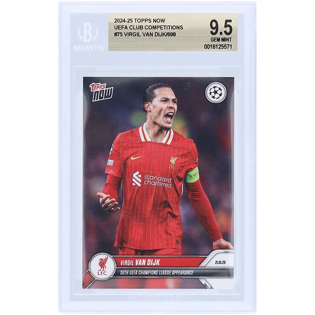 Virgil van Dijk Liverpool 2024-25 Topps maintenant 50e apparition en UEFA Champions League #75 BGS Authenticated 9.5 Card