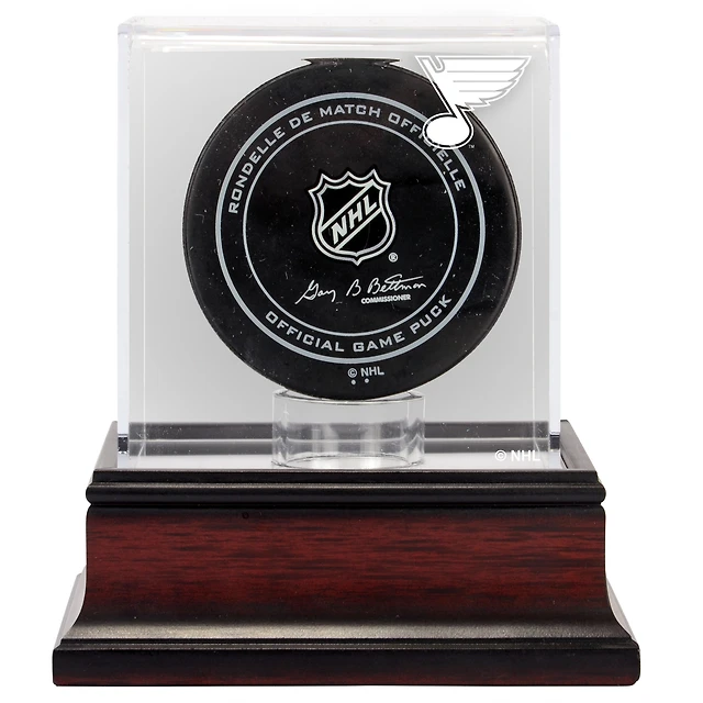 Vitrine avec logo de rondelle de hockey en acajou des Blues de St. Louis