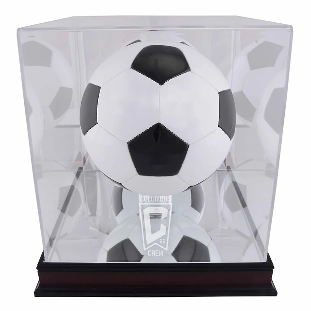 Vitrine de ballon de football avec logo de l'équipe Columbus Crew en acajou