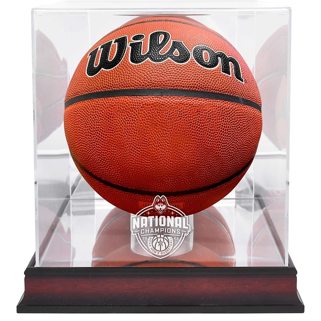 Vitrine de basket-ball en acajou des champions nationaux de basket-ball masculin de la NCAA 2023 des Huskies de l'UConn