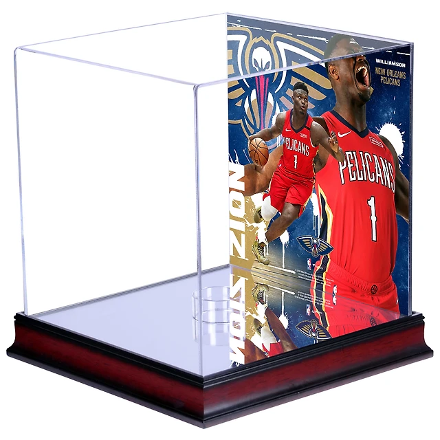 Vitrine de basket-ball en acajou Zion Williamson New Orleans Pelicans avec plaque sublimée