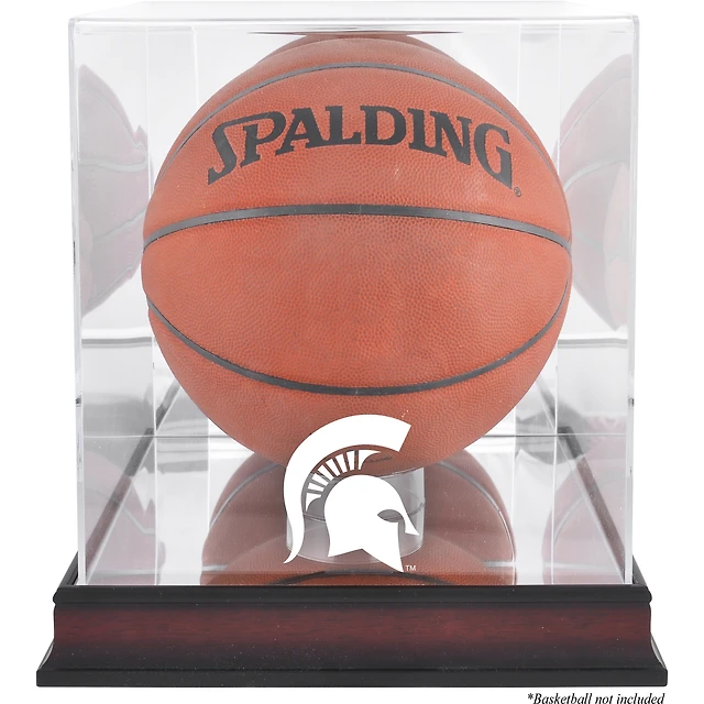 Vitrine de basket-ball Michigan State Spartans en acajou avec finition antique et dos en miroir