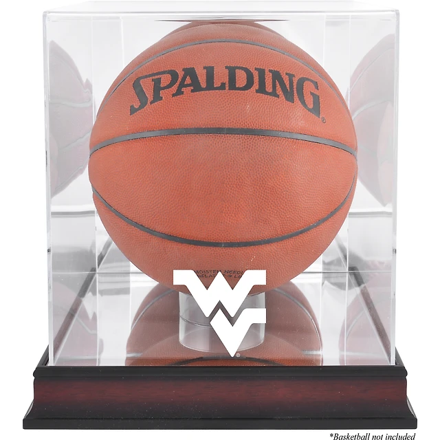 Vitrine de basket-ball West Virginia Mountaineers en acajou avec finition antique et dos en miroir