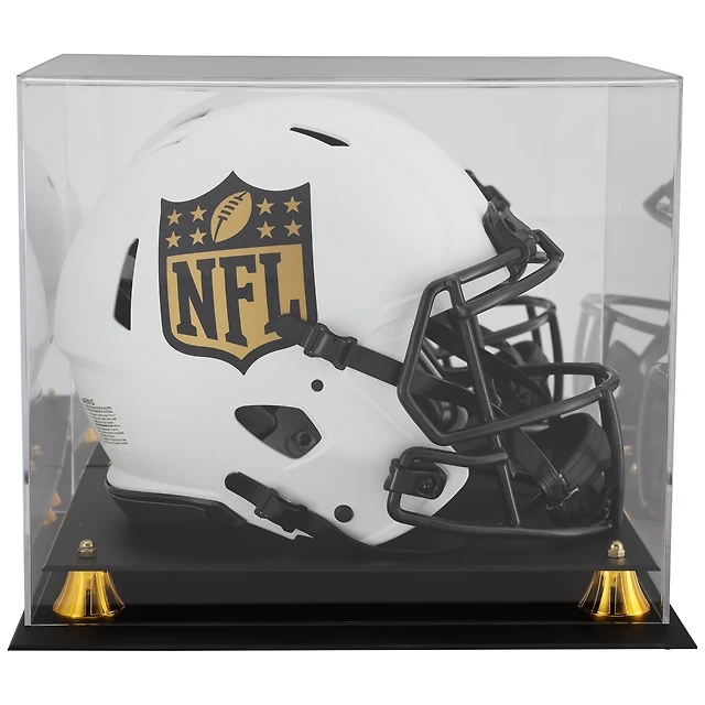 Vitrine de casque classique doré et fond miroir avec finition mate