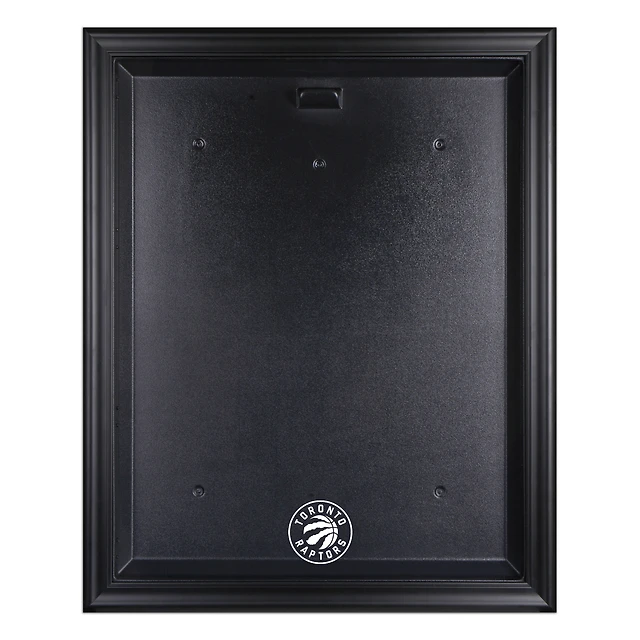 Vitrine de maillot noir avec logo de l'équipe encadrée des Raptors de Toronto
