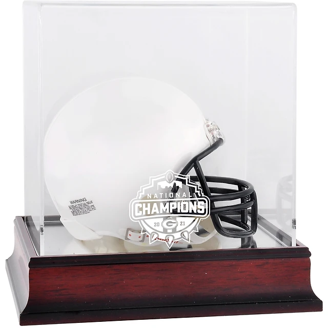 Vitrine de mini-casque en acajou des champions des éliminatoires de football universitaire 2021 des Georgia Bulldogs
