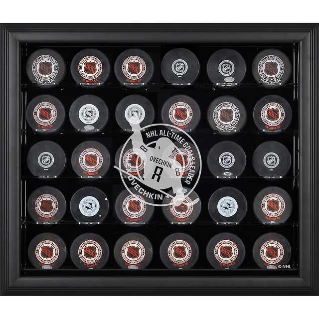 Vitrine de présentation avec logo Alexander Ovechkin des Capitals de Washington, 30 rondelles, 895e but, cadre noir