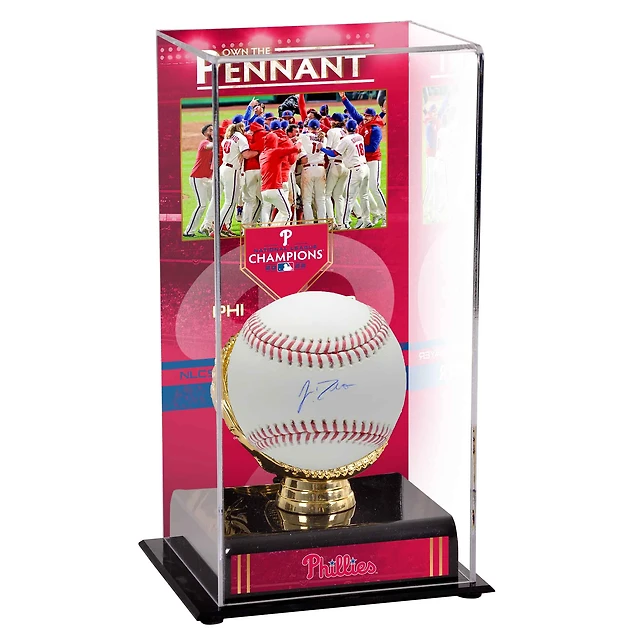 Vitrine de présentation de baseball autographiée par J.T. Realmuto des Philadelphia Phillies et des champions de la Ligue nationale 2022 sublimés