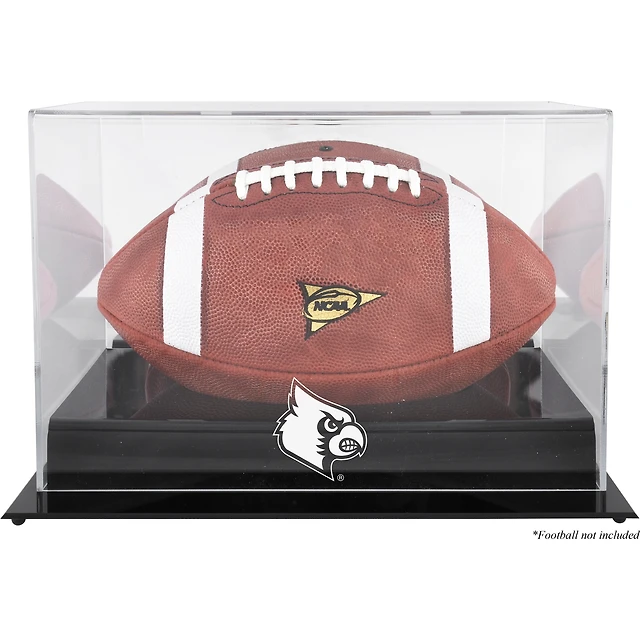 Vitrine de présentation de football avec logo de l'équipe des Cardinals de Louisville à base noire et dos miroir