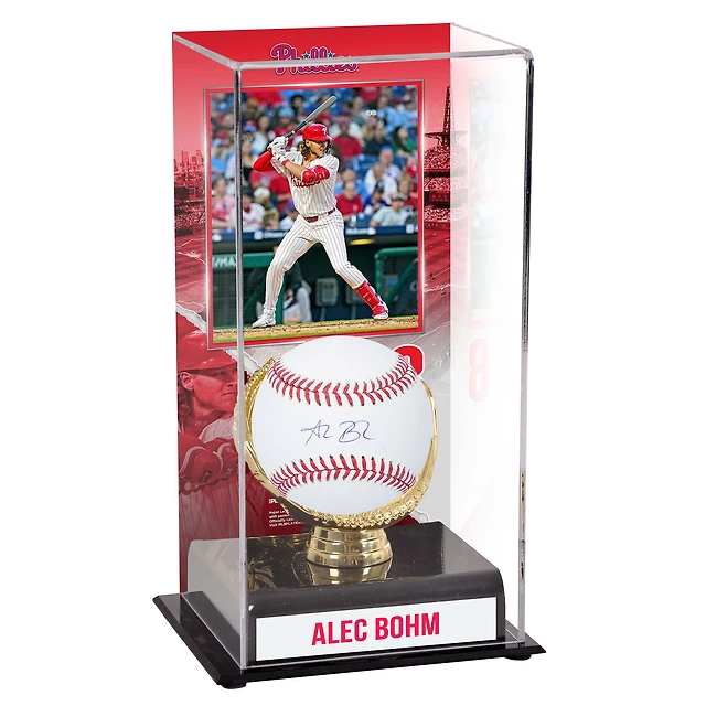 Vitrine de présentation de gants de baseball autographiés et sublimés en or des Philadelphia Phillies d'Alec Bohm avec image