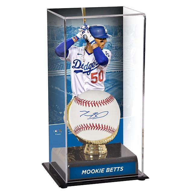 Vitrine de présentation de gants de baseball et d'or autographiés par Mookie Betts des Los Angeles Dodgers avec image