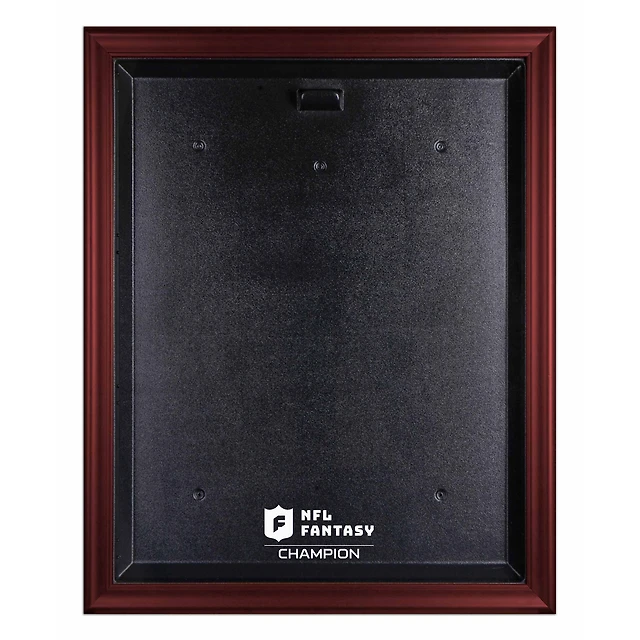Vitrine de présentation de maillot avec logo de l'équipe championne de football fantastique de la NFL avec cadre en acajou