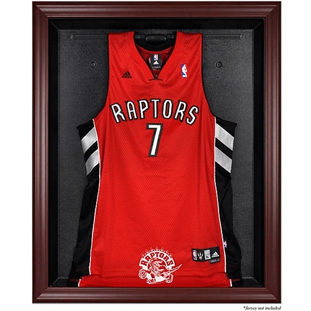 Vitrine de présentation de maillots avec logo des Toronto Raptors 1995-2015 en bois dur avec cadre en acajou