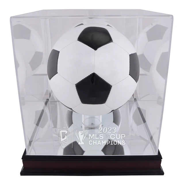 Vitrine de présentation du ballon de football Columbus Crew 2023 MLS Cup Champions en acajou avec logo de l'équipe