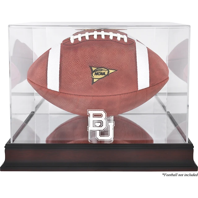 Vitrine de présentation du logo de football des Baylor Bears avec base en acajou et dos en miroir