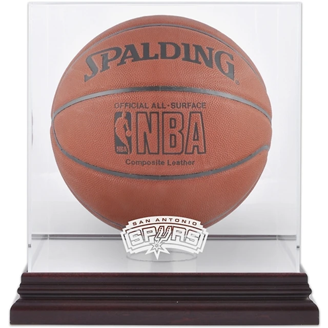 Vitrine de présentation du logo de l'équipe de basket-ball des San Antonio Spurs (2002-2017) en acajou avec dos en miroir