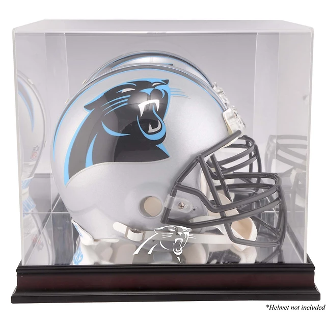 Vitrine de présentation du logo du casque des Carolina Panthers en acajou avec dos miroir