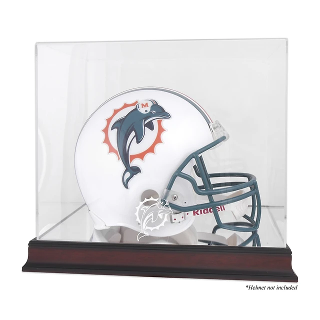 Vitrine de présentation du logo du casque des Miami Dolphins en acajou avec dos miroir
