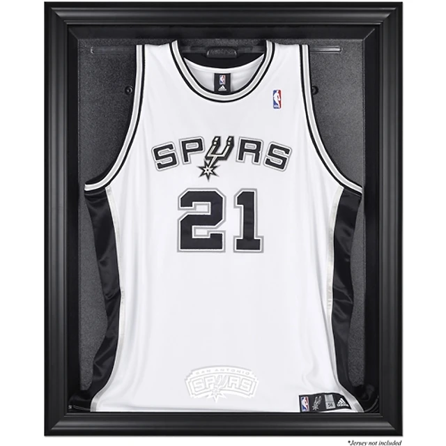 Vitrine de présentation du maillot avec logo de l'équipe des San Antonio Spurs (2002-2017) encadré noir