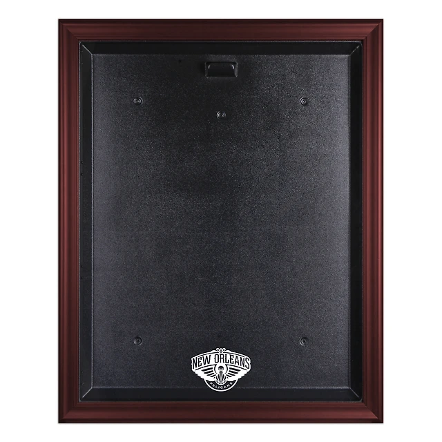 Vitrine de présentation du maillot avec logo des New Orleans Pelicans en acajou