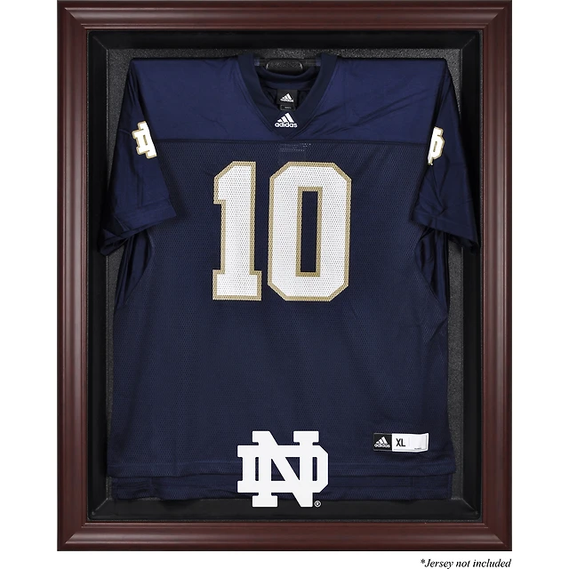 Vitrine de présentation du maillot avec logo encadré en acajou des Fighting Irish de Notre Dame
