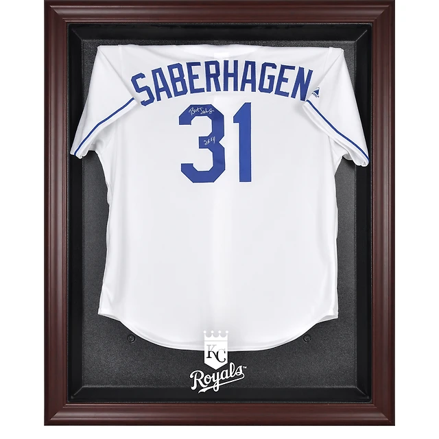 Vitrine de présentation du maillot avec logo encadré en acajou des Royals de Kansas City