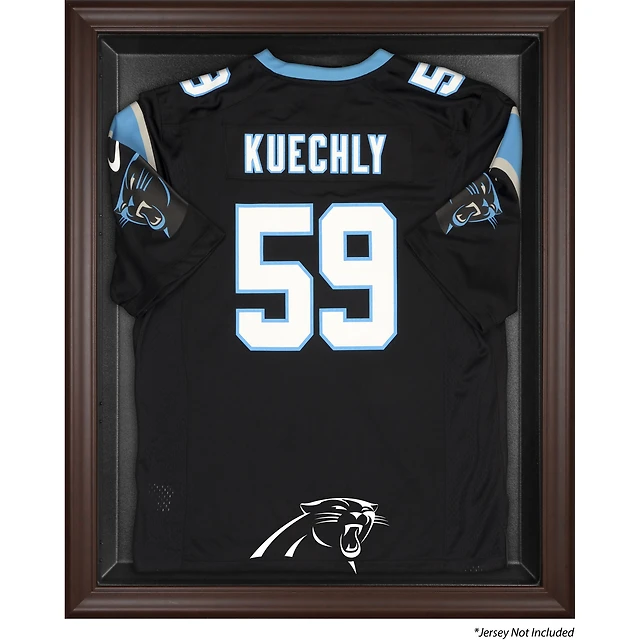 Vitrine de présentation du maillot avec logo encadré marron des Carolina Panthers