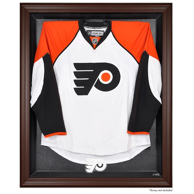 Vitrine de présentation du maillot avec logo encadré marron des Flyers de Philadelphie