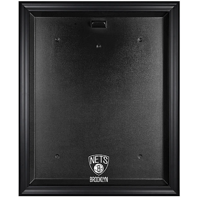 Vitrine de présentation du maillot avec logo encadré noir des Brooklyn Nets