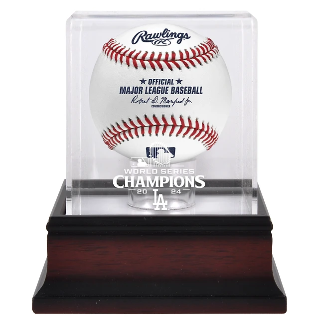 Vitrine de présentation en acajou avec logo de baseball des Dodgers de Los Angeles, champions de la Série mondiale 2024
