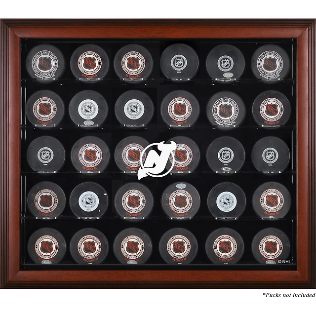 Vitrine de présentation en acajou pour 30 rondelles des Devils du New Jersey