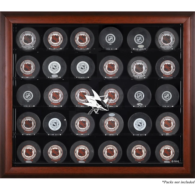 Vitrine de présentation en acajou pour 30 rondelles des Sharks de San Jose