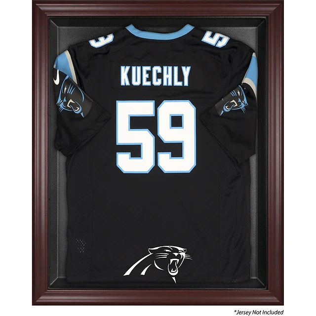 Vitrine de présentation encadrée en acajou pour maillots des Carolina Panthers