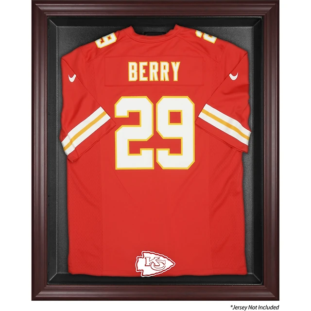 Vitrine de présentation encadrée en acajou pour maillots des Kansas City Chiefs