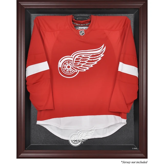 Vitrine de présentation encadrée en acajou pour maillots des Red Wings de Détroit