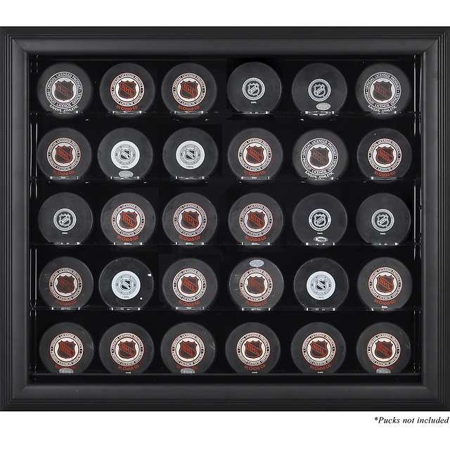 Vitrine de présentation encadrée noire pour 30 rondelles de hockey