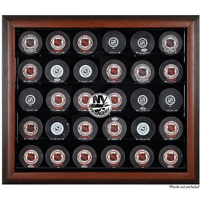 Vitrine de présentation marron pour 30 rondelles des Islanders de New York