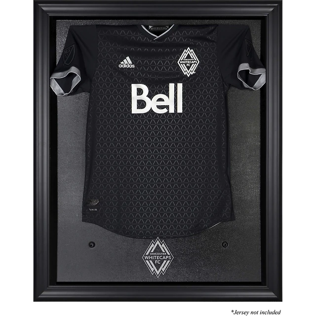 Vitrine de présentation pour maillot avec logo de l'équipe encadré noir des Whitecaps de Vancouver