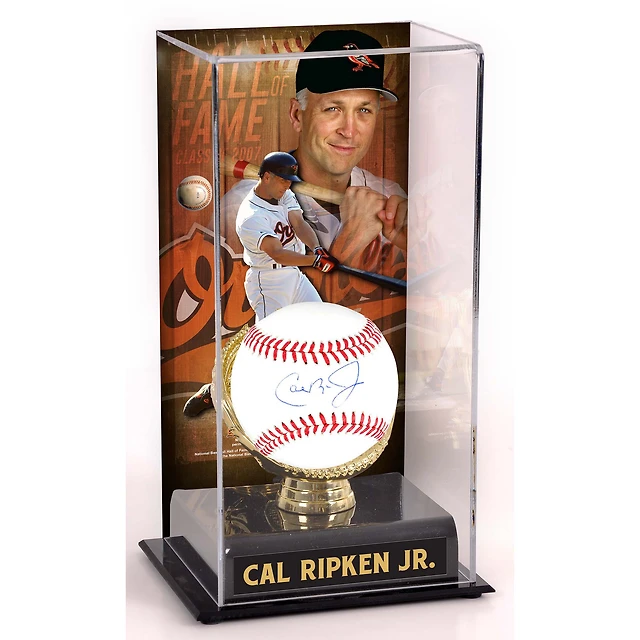 Vitrine d'exposition sublimée avec les autographes de Cal Ripken Jr. Baltimore Orioles et le Temple de la renommée